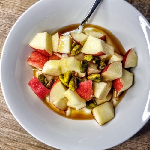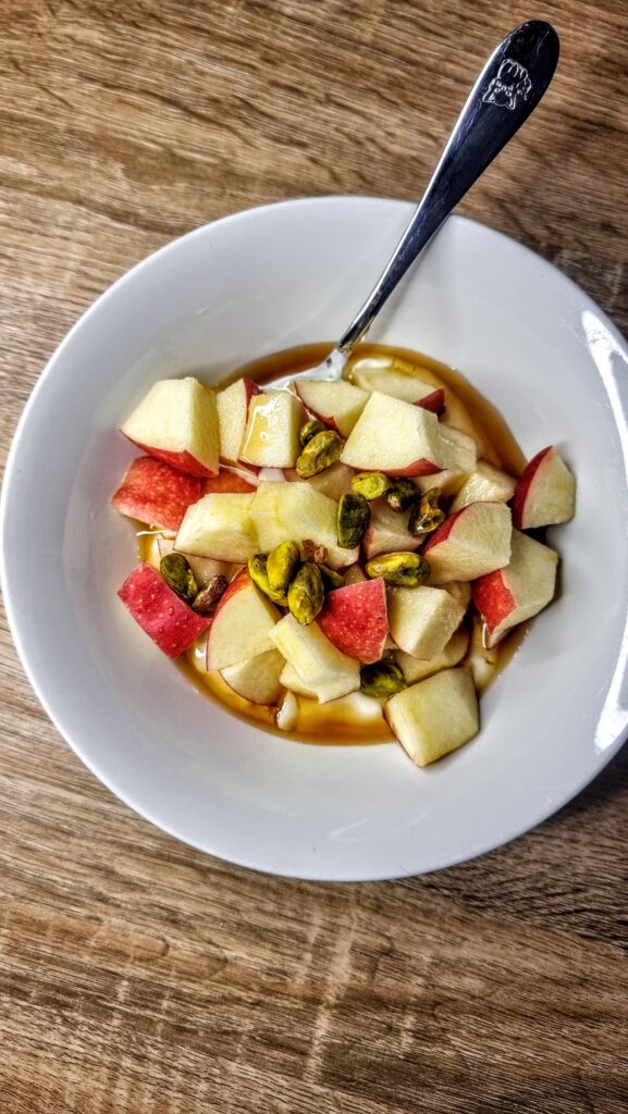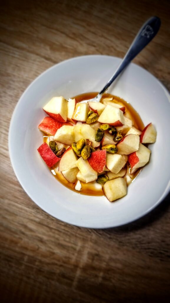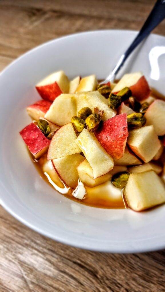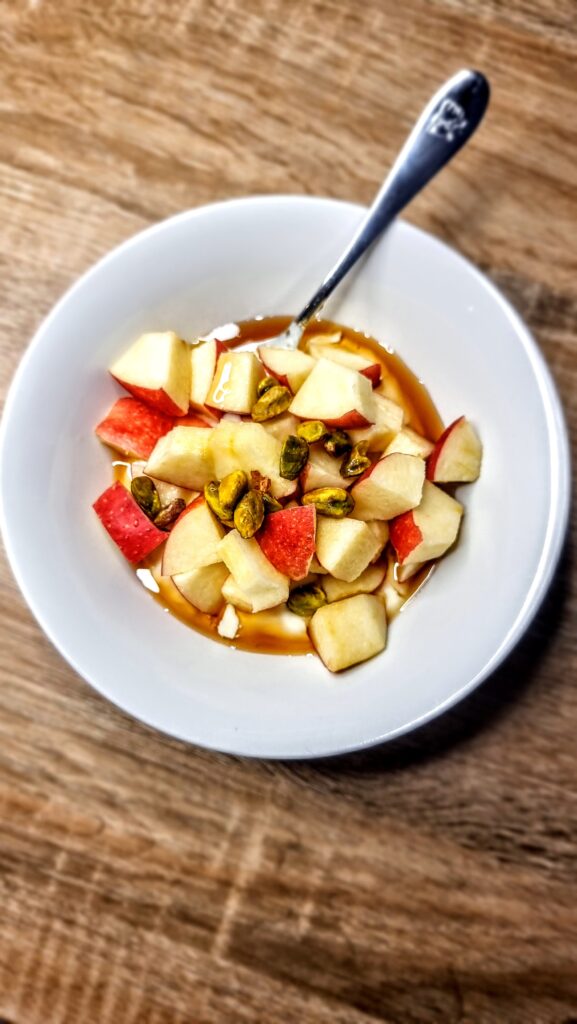 This simple yet delicious recipe combines the creamy texture of yogurt with the sweetness of apples and the crunch of pistachios, all tied together with a drizzle of maple syrup. It’s a perfect breakfast or snack that’s not only tasty but also packed with nutrients.