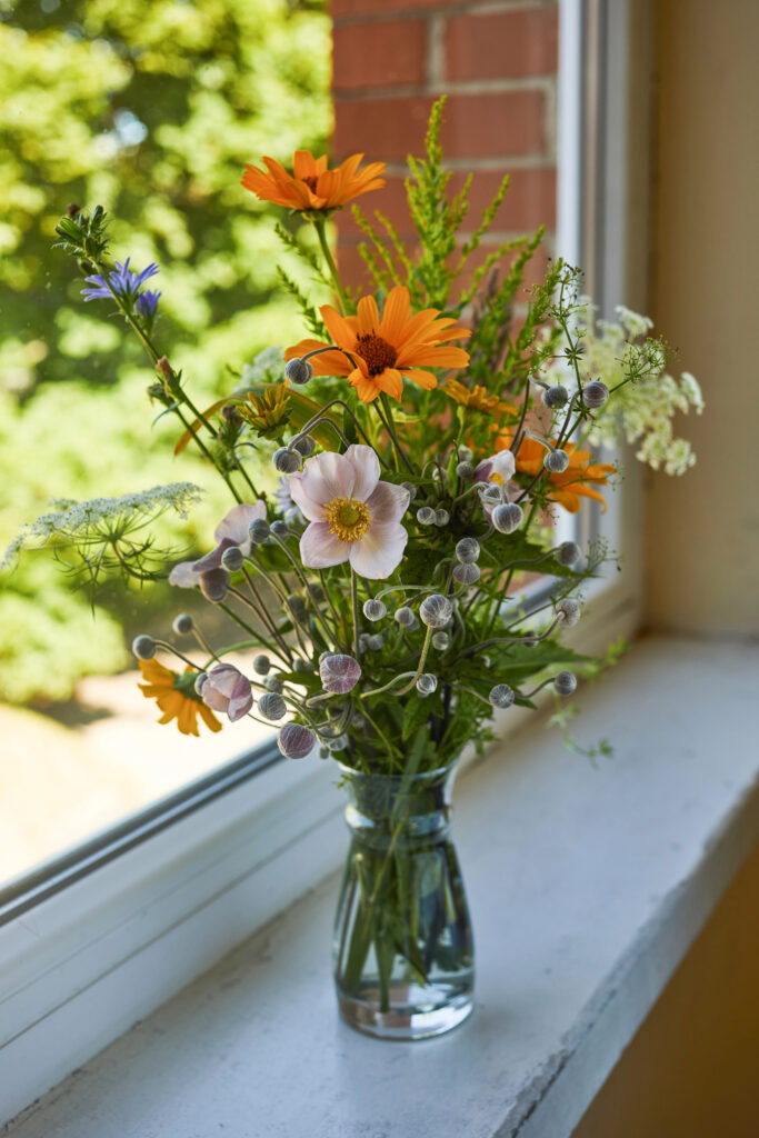 Don’t forget vertical spaces. Use climbing plants with small flowers, like clematis or small-flowered morning glory, in pots near a window. For cut flowers, choose options with long, graceful stems and let them gently trail or lean in taller vases. This adds softness and draws the eye upward, mimicking a rambling cottage garden.