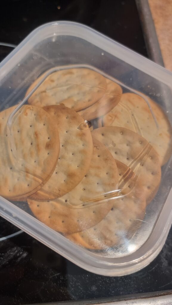 Go for any types of crackers you like, a great thing to do with any left over crackers is to store them in a tub so they don’t go stale.