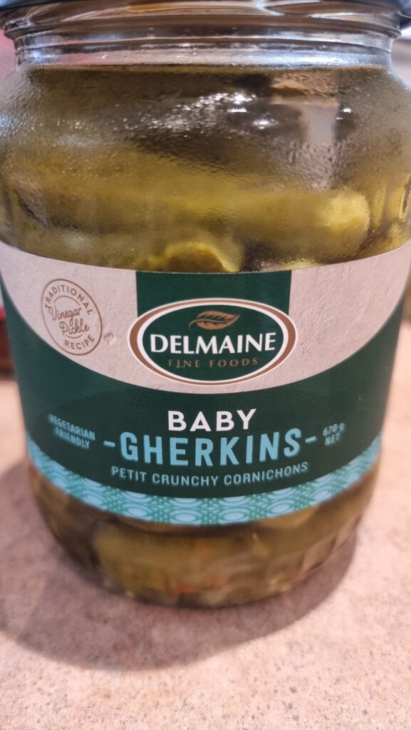 Cornichons are tiny pickles that pack a sharp, sour punch. They’re crisp and slightly bitter, which cuts through richer flavours like ham and pate. I like them because their tangy taste wakes up your palate between bites.