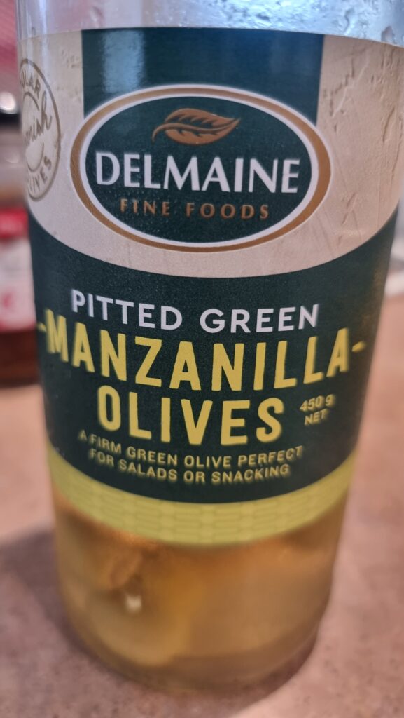 Green olives add a strong, salty flavour to the mix. I like all kinds of olives, olives stuffed with pimentos are a nice addition because they have a little sweetness inside the salty bite. Their brininess contrasts nicely with the creamy pate.