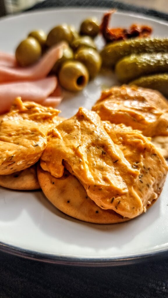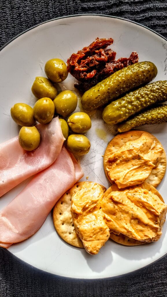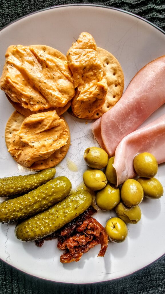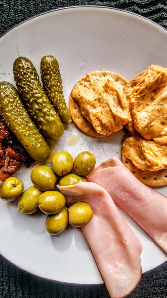 They’re also small, so they fit nicely on crackers without being overpowering. Cornichons add a nice crunch, making the snack feel fresh and lively. If you find them too sour, rinsing in cold water can tone that down a little. Another option is gherkins, as these are bigger you could slice them so it’s easier to blend with the other ingredients say on crackers.