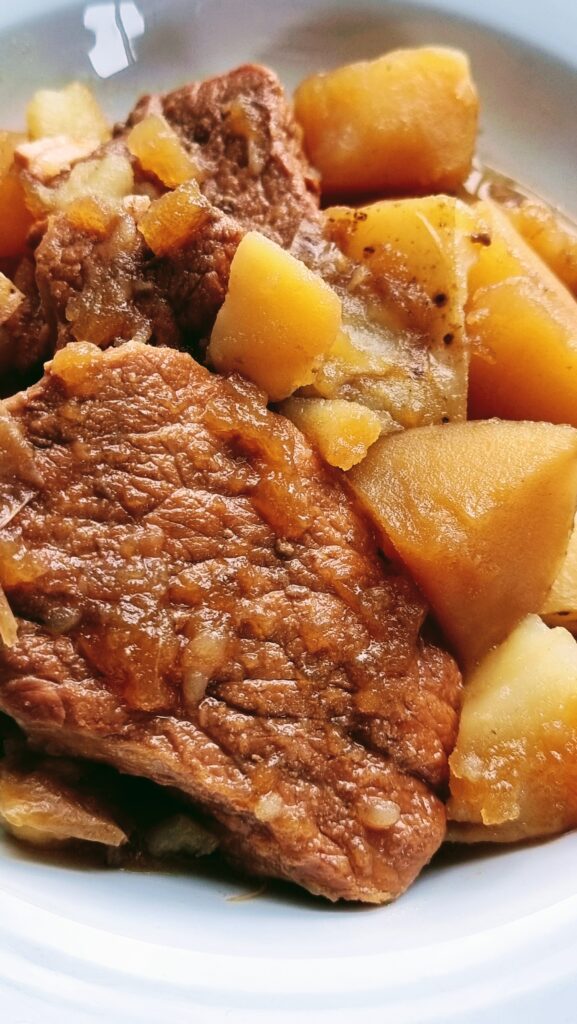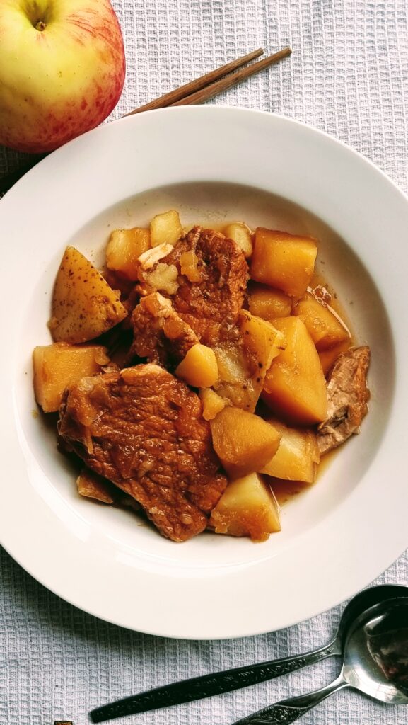 There’s something deeply comforting about the pairing of tender pork with the subtle sweetness of apple and the earthy heartiness of potato. This pressure cooker recipe brings them all together in a fragrant, umami-rich sauce that’s both easy to make and full of flavor. It’s the kind of dish that tastes like you’ve spent all day over the stove, when really, the pressure cooker does most of the work.