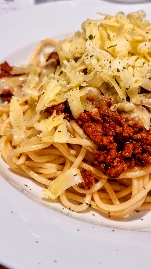 - Once the mince is browned, add the tomato paste, Italian herbs, and the beef stock and enough water to almost cover the mince (You can always add more). Give it a good stir and let it simmer on low.